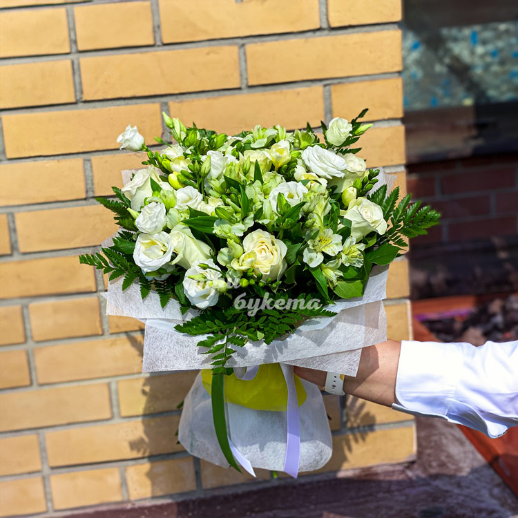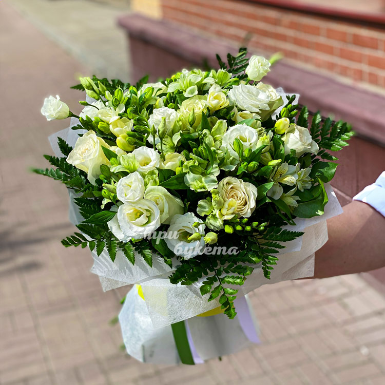 Белый букет альстромерий, роз и фрезий