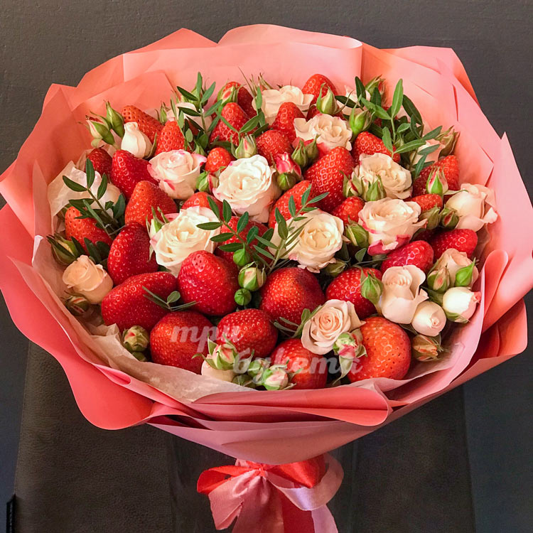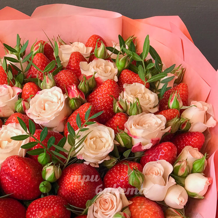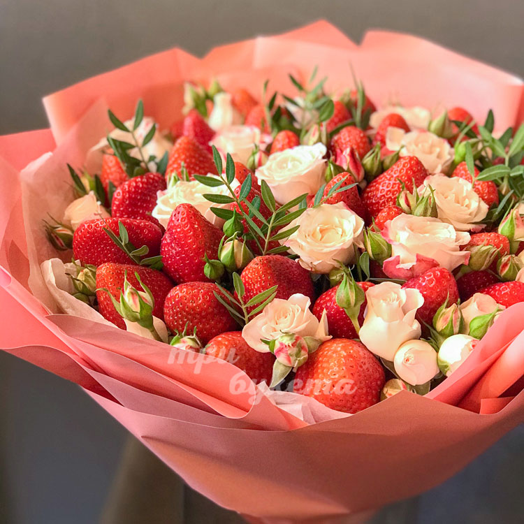 Букет из 35 ягод клубники и роз