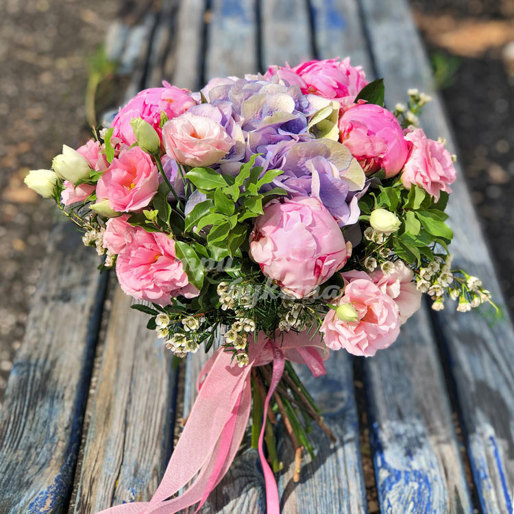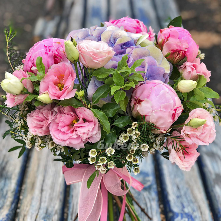 Букет из гортензии, пионов и эустом