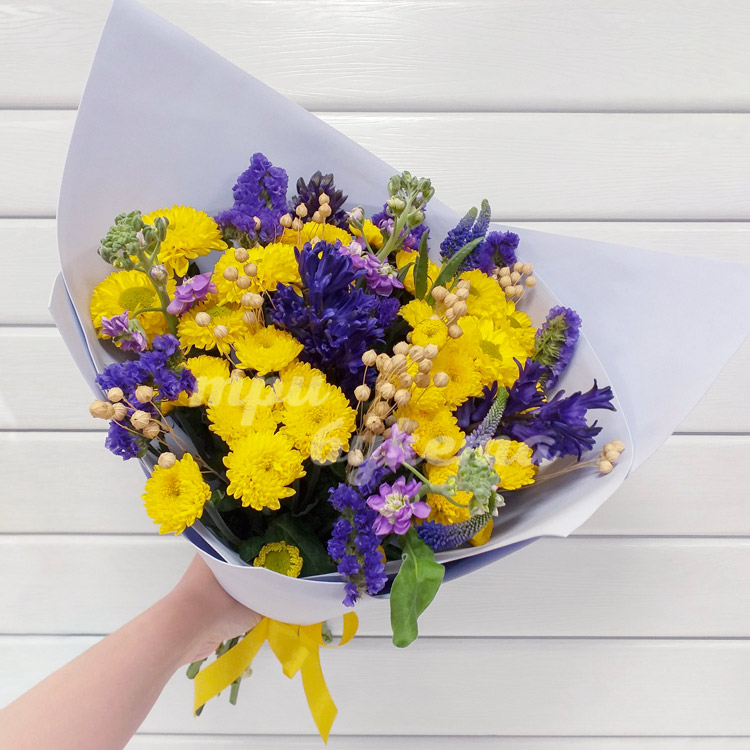 Букет из вероники и хризантем