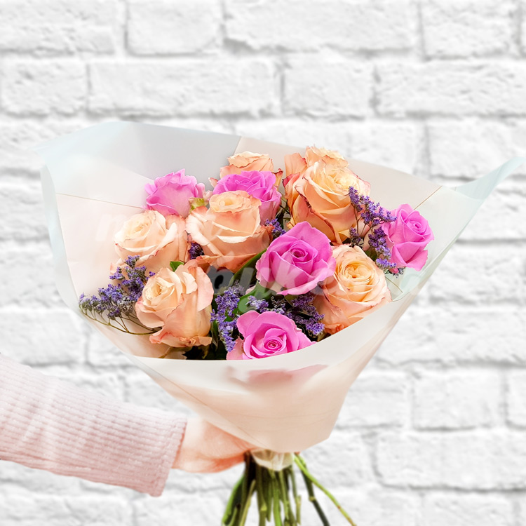 Букет розовых и персиковых роз