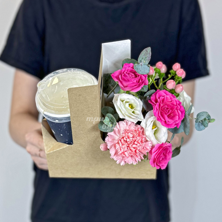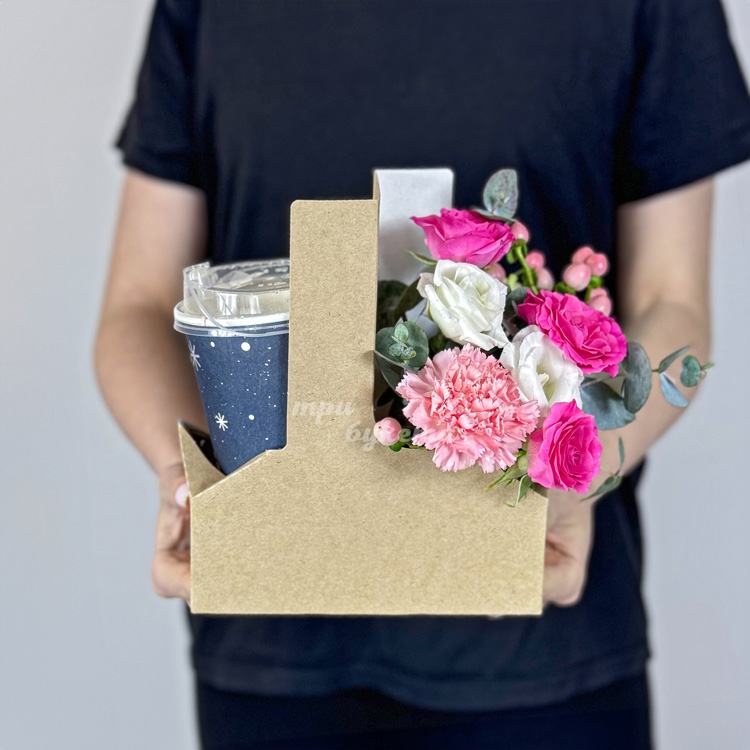 Коробочка с кофе, розами и гвоздикой