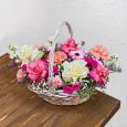 Корзина розовых французских роз и ранункулюсов