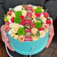 Макаруны с гвоздиками и розами в коробке