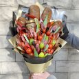 Мини-букет красных тюльпанов и роз