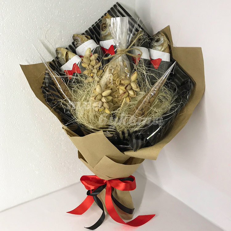 Мужской букет из рыбы и фисташек