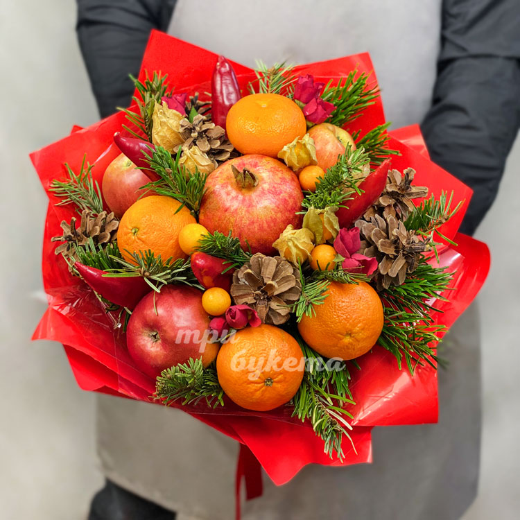 Новогодний букет из яблок и перцев