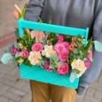 Розы и хризантемы в ящичке