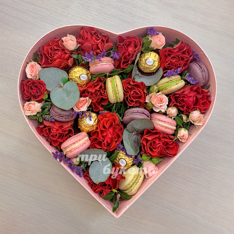 Сердце с розами и макарунами