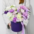 Шляпная коробка белых и желтых хризантем