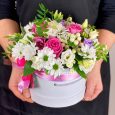Шляпная коробка с розами и орхидеей