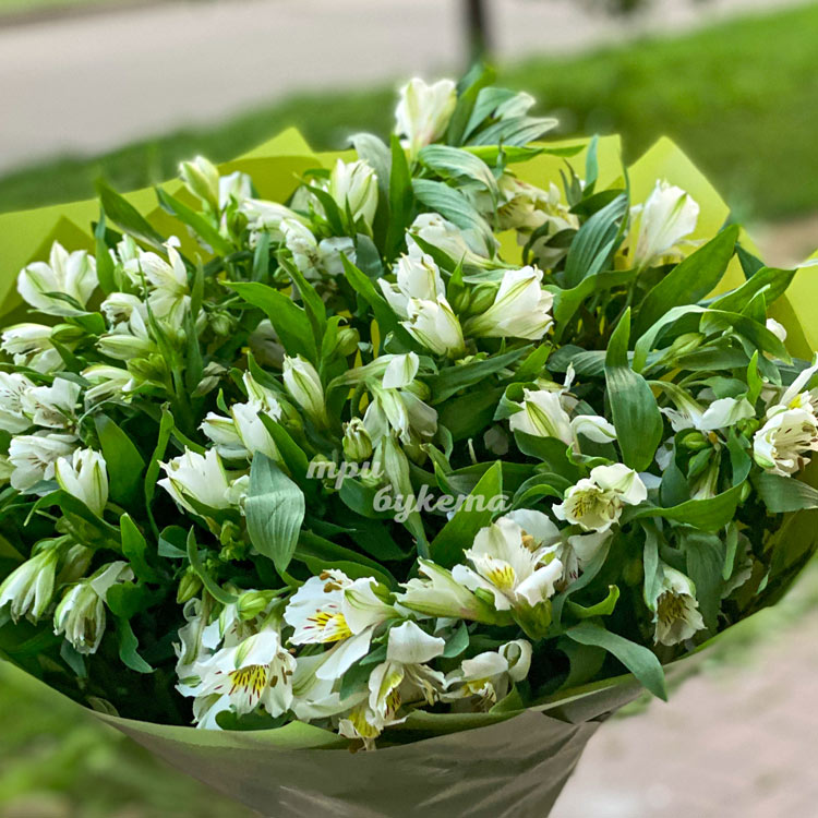 Зеленый букет из белых альстромерий